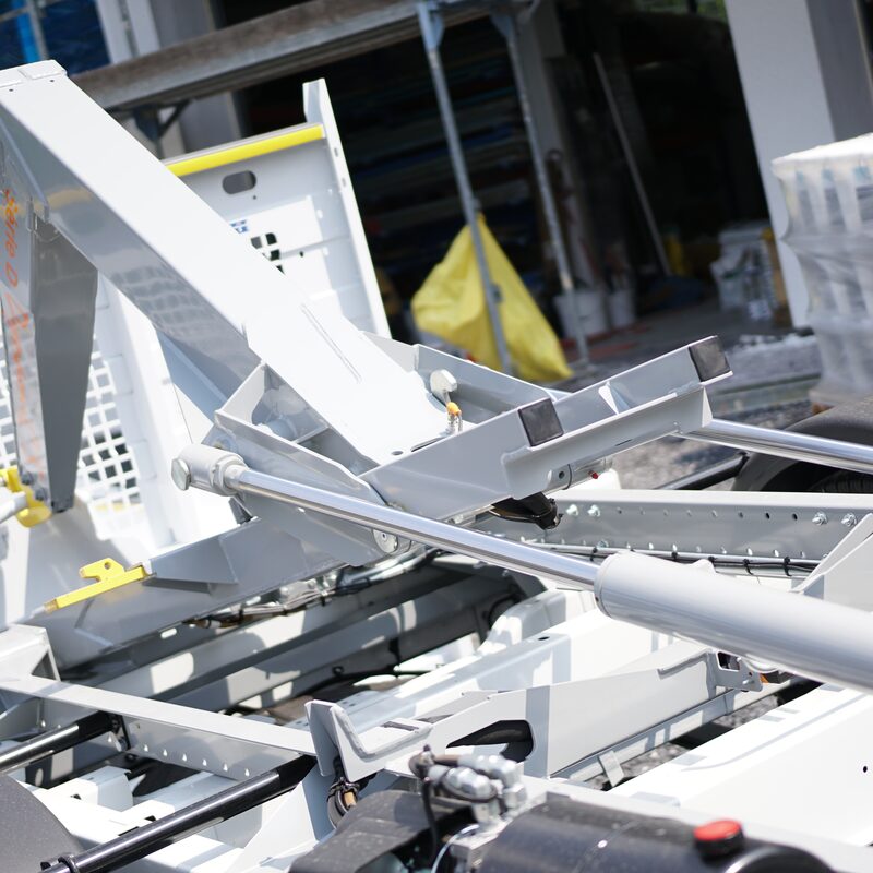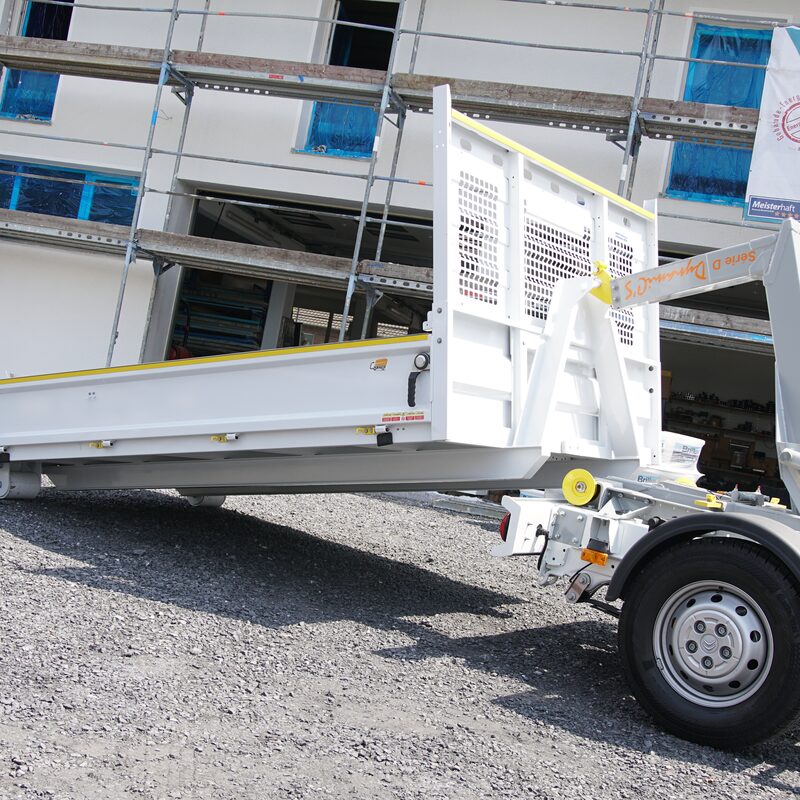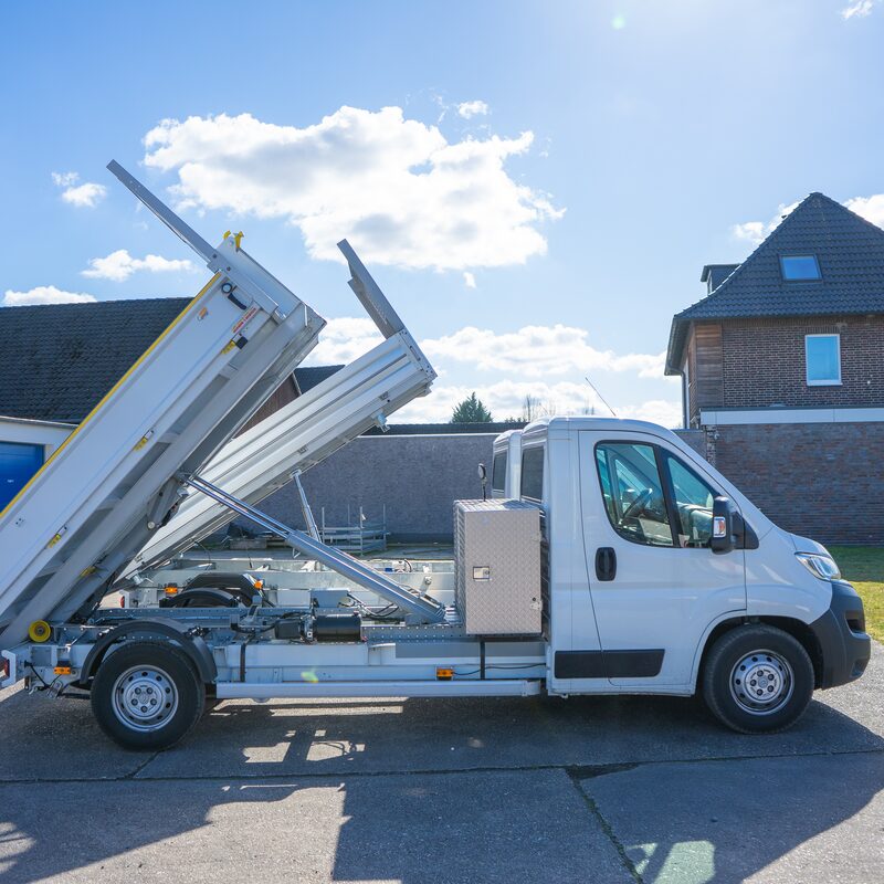 Schüttgut kann vor Ort mit der Kippfunktion abgeladen, die genutzte Mulde zur Sammlung von Bauschutt abgesetzt und das Fahrzeug nun für andere Aufgaben eingesetzt werden. Dies ist nur eine der Use Cases, die mit der Standartmulde erfüllbar ist. In Kombination mit mehreren Wechselmulden, wie Gitterboxen, Planengestell, Koffern oder offenen Containern scheinen die Einsatzmöglichkeiten unendlich, um der Abdeckung verschiedener Bedürfnisse an verschiedenen Arbeitsorten gerecht zu werden. Die Wechselcontainer können nach Belieben gestaltet werden. Potentiell ist eine kleine Werkstatt, ein mobiles Materiallager, ein Werkzeugdepot, ein Pausenraum oder andere Ausbauten eines Containers möglich. Sparen Sie Zeit, erhöhen Sie Ihren Komfort und überdenken Sie Ihre bisherigen Möglichkeiten.